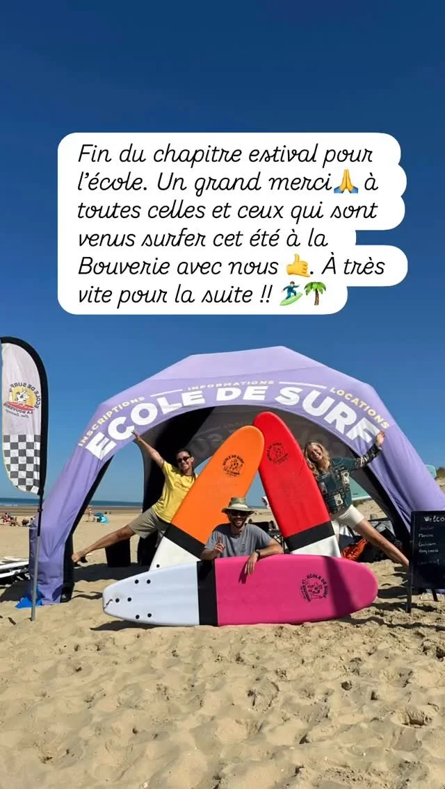 Juillet/Août 👉 Venez directement sur la plage de la Bouverie vous servir dans le quiver de l’école. Tout est déjà sur place !