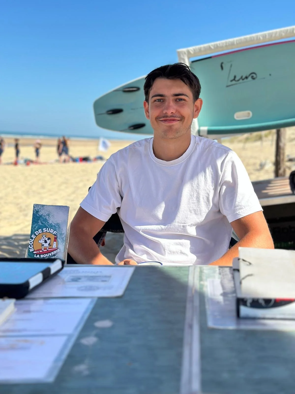 Vous me trouverez tout l’été avec Maël au secrétariat sous la tente de l’école pour vous donner toutes les informations dont vous aurez besoin pour vos cours de surf ou pour de la location !